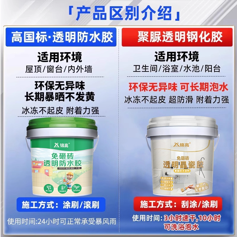 透明防水胶卫生间专用免砸砖裂缝渗水的防水涂料外墙补漏防漏材料