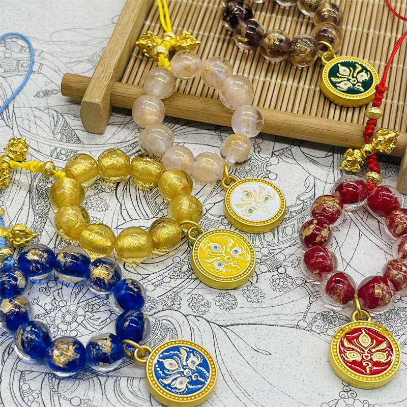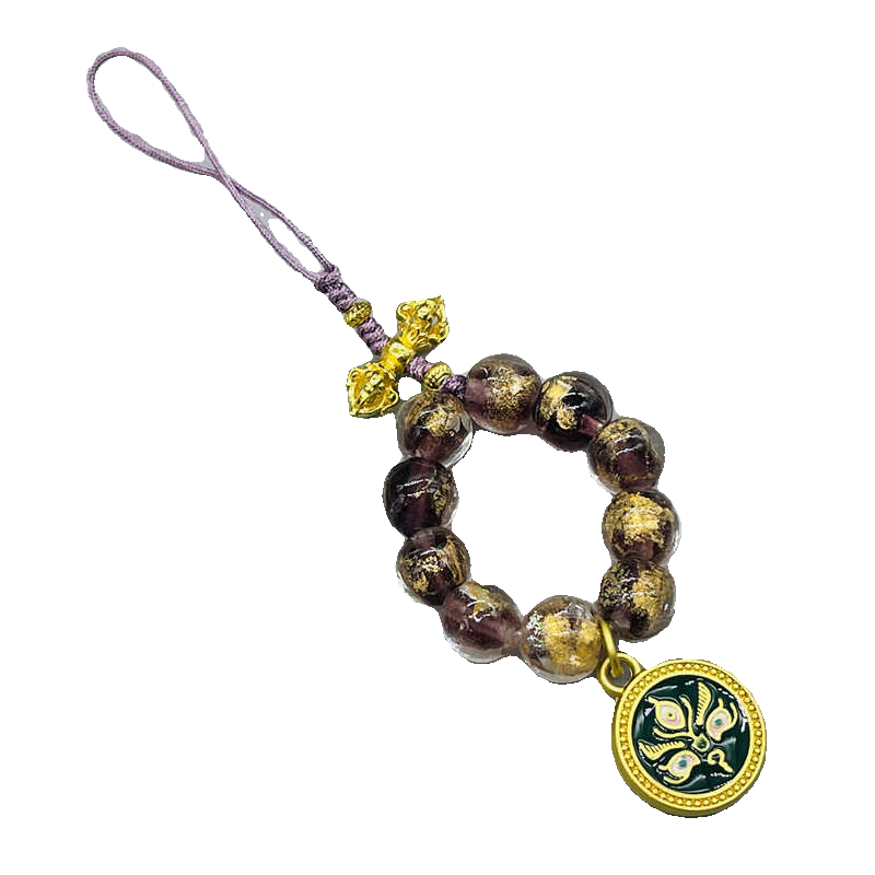 香灰金箔琉璃瓷半糖心手机链五路财神汽车钥匙扣挂件时尚百搭饰品