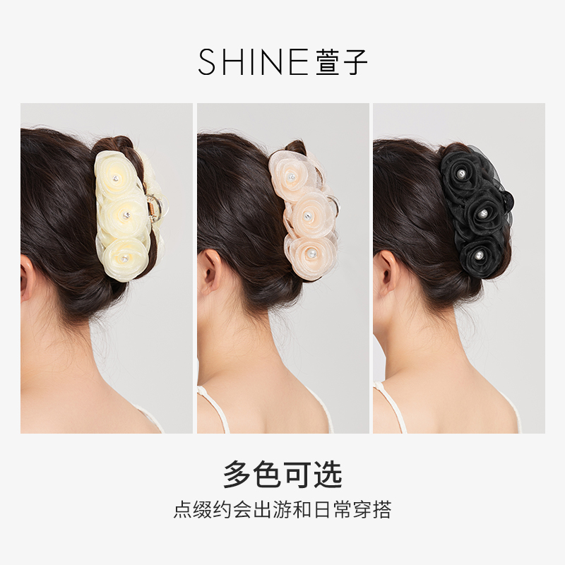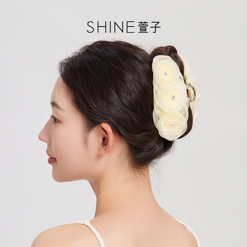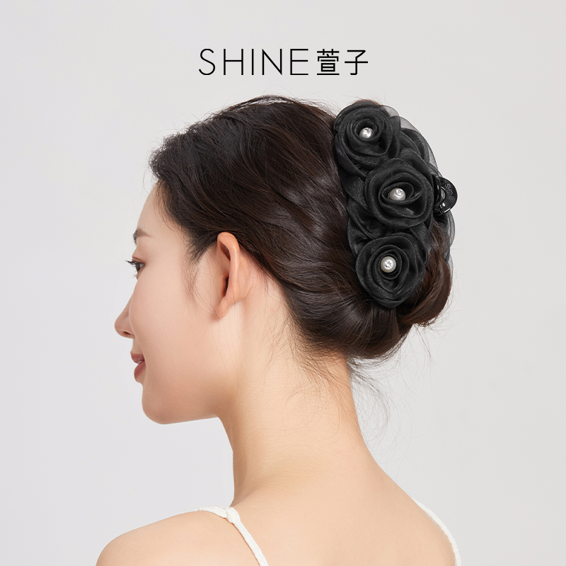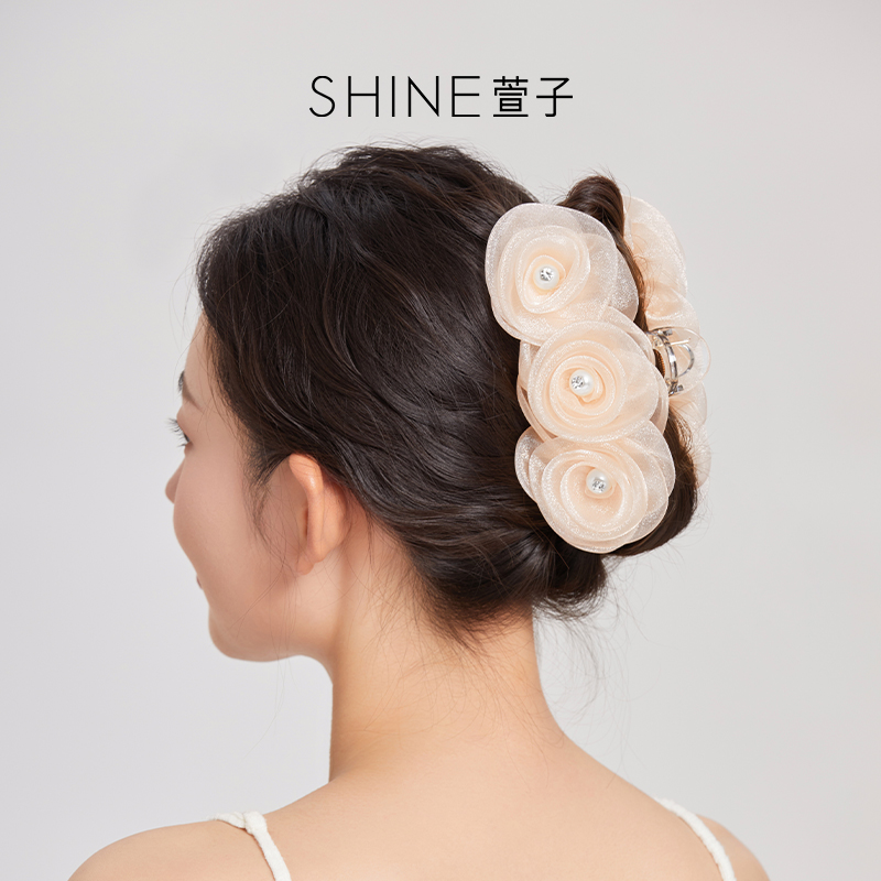 SHINE萱子饰品优雅氛围感轻纱花朵抓夹欧若风珍珠发夹女生日礼物