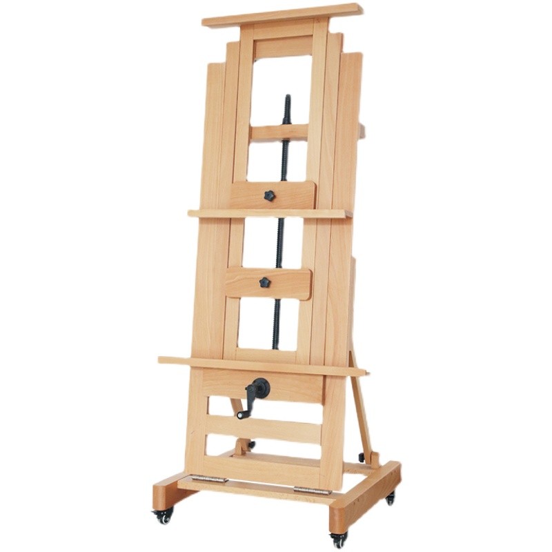榉木制平立两用落地实木加厚款可调节单摇杆手摇国画大油画架