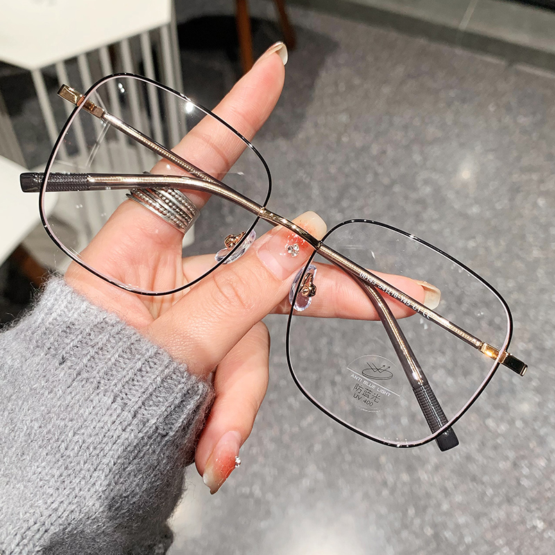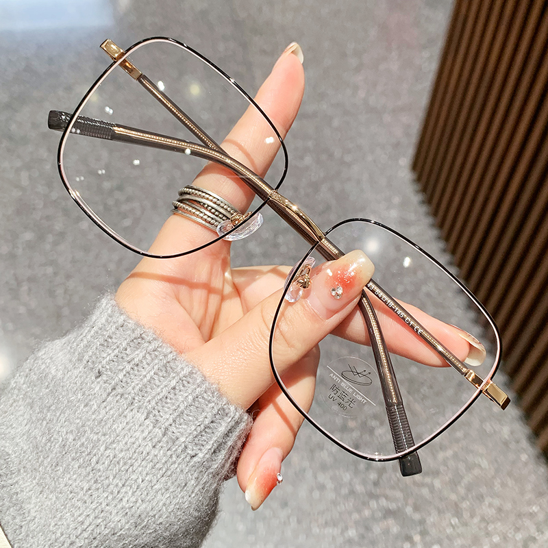 新款抗防蓝光辐射眼镜男女同款配平光无度数大脸显瘦玫瑰金色大框