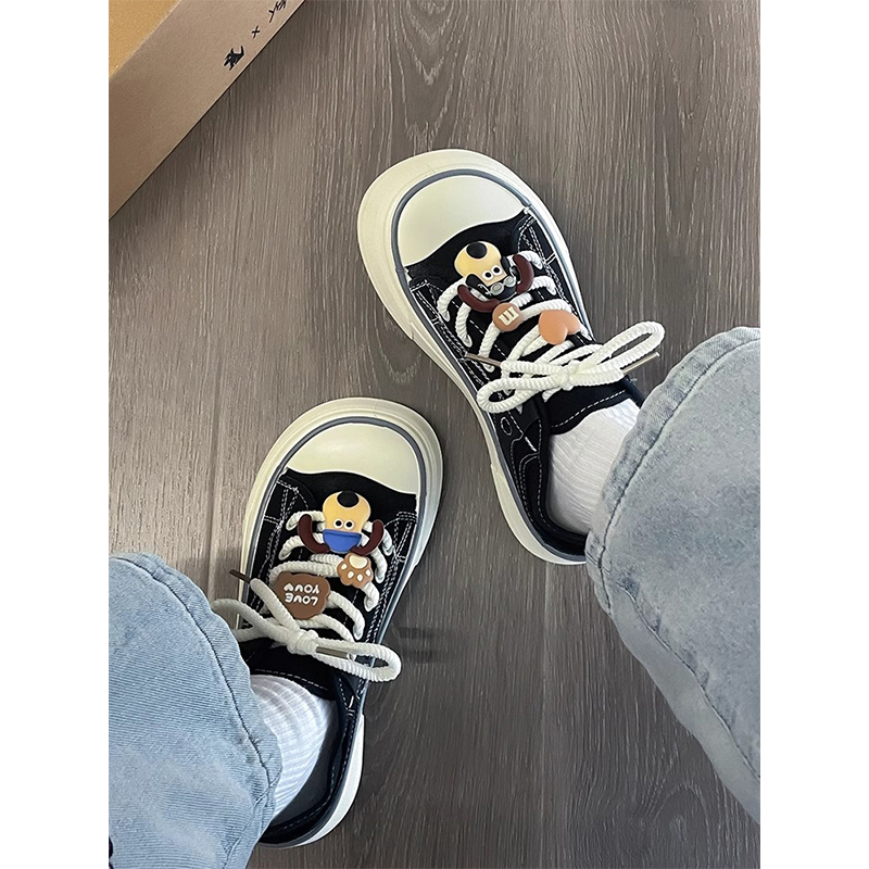 环球官方旗舰店经典厚底帆布鞋女2025秋季新款小黑鞋休闲百搭板鞋