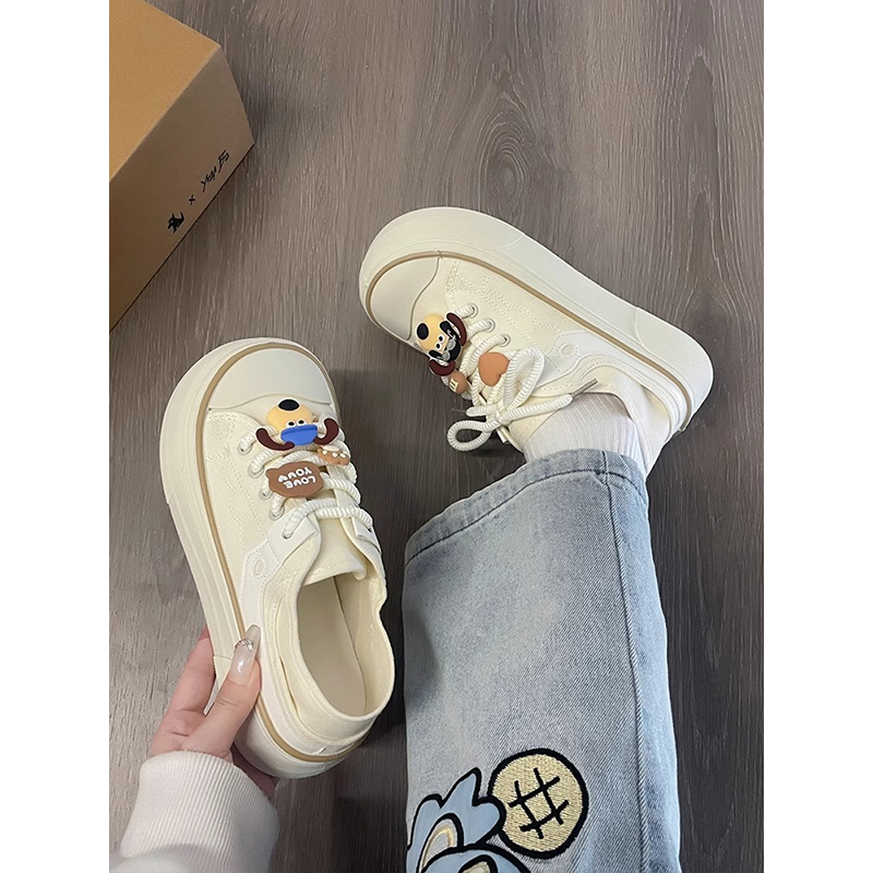 厚底帆布鞋女2025新款春夏季网红超火配裙子小白鞋休闲设计感小众
