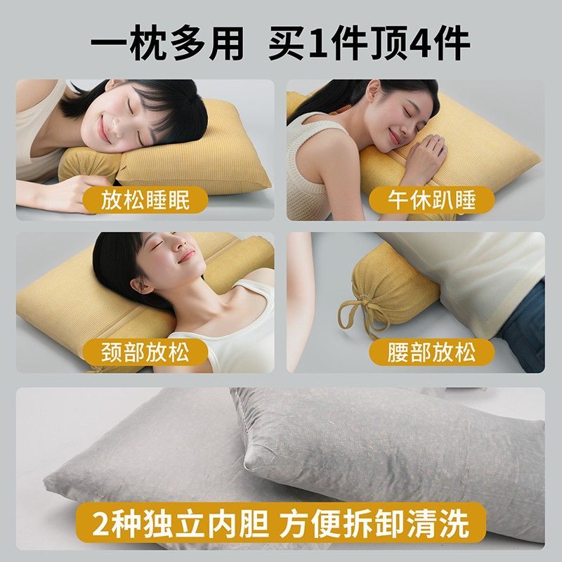 全棉纯荞麦壳护颈枕成人专用枕头枕芯一对助睡眠圆柱颈椎枕可拆卸