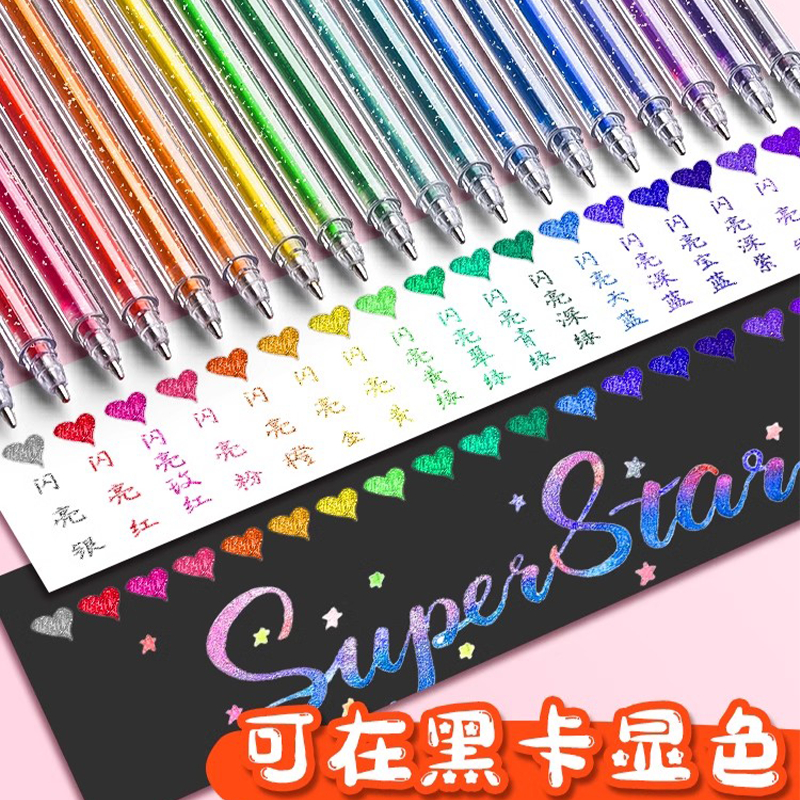 彩色闪光笔啫喱发光亮晶晶流沙银光变色做手账的手帐专用儿童莹光做笔记珠光标记闪亮金属轮廓闪粉水彩笔荧光