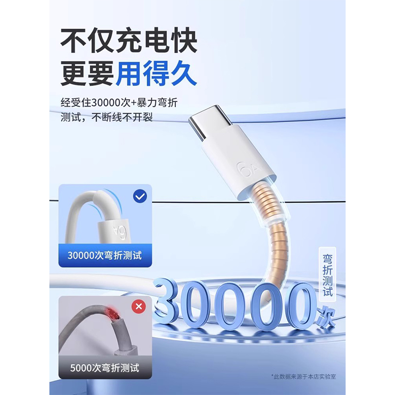 Type-c数据线6A快充适用tpyec充电线华为小米vivo安卓5A充电器线nova7荣耀9x手机tpc66W超级快充冲车载100W