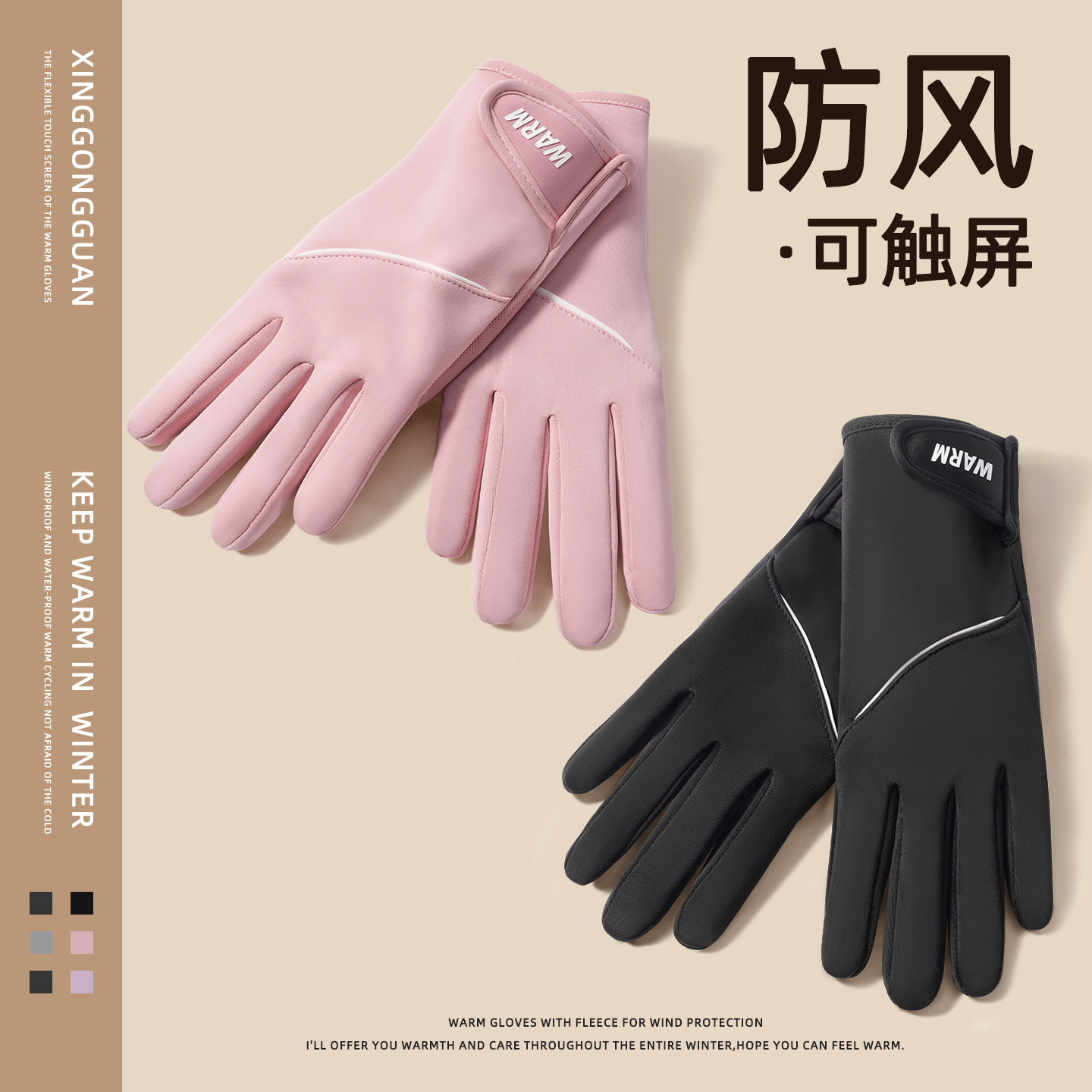 新款冬季保暖手套加绒加厚防寒触屏骑行开车户外运动德绒棉手套