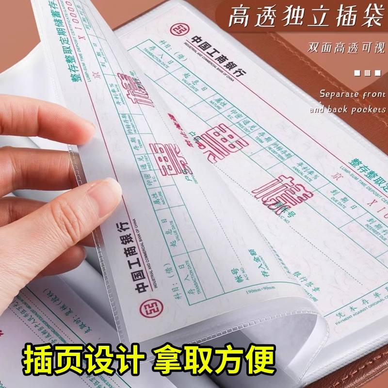 存单收纳本2025新款多功能票据银行定期活期网红存款大额纸质一体化防水收藏夹皮透明大容量装支票汇票收集本