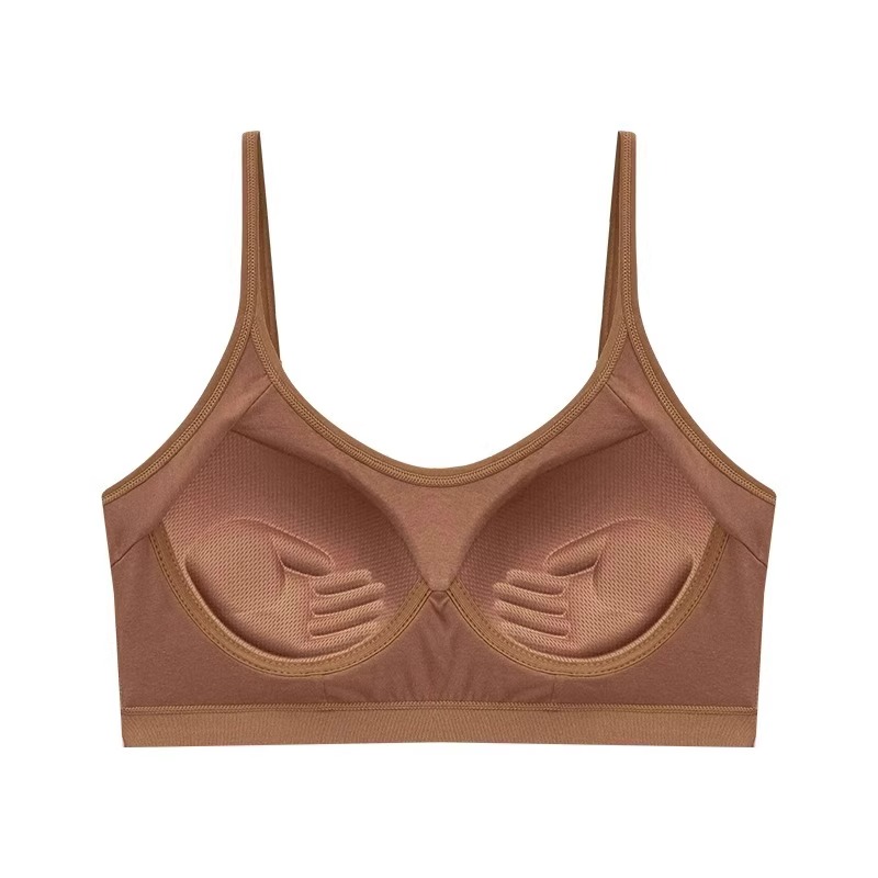纯棉内衣女小胸聚拢美背学生运动少女背心文胸罩一体式排扣固定