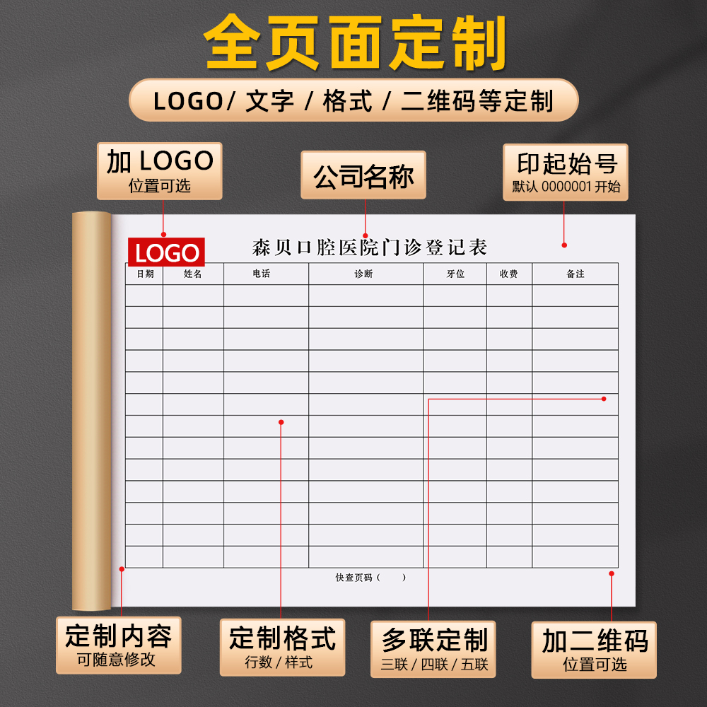 【门诊登记簿】医疗机构就诊记录表口腔诊断治疗通知单病情记录本