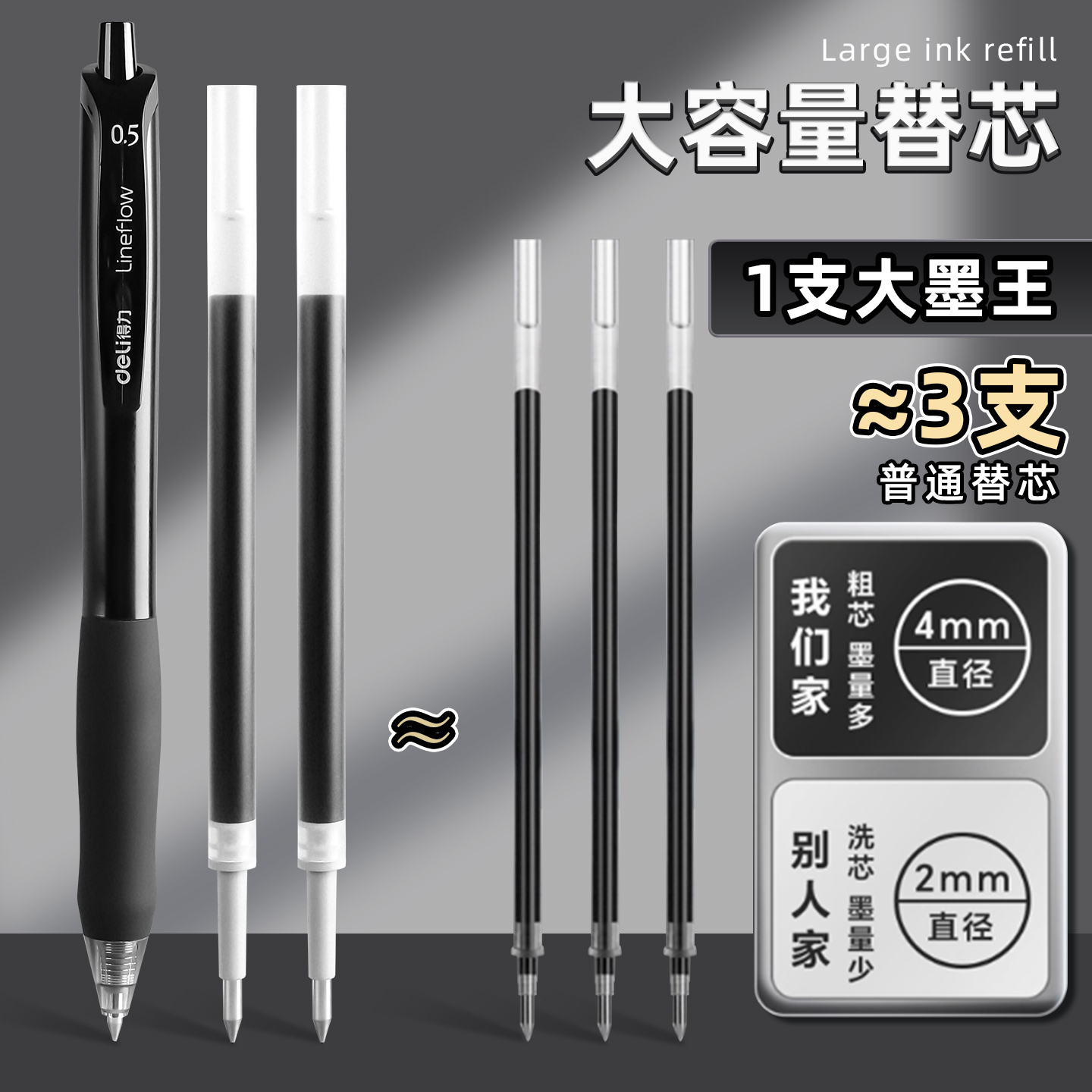得力直液式走珠笔速干大容量直液笔0.5黑色中性笔学生用速干刷题笔水性笔直液笔圆珠笔商务办公简约风笔杆