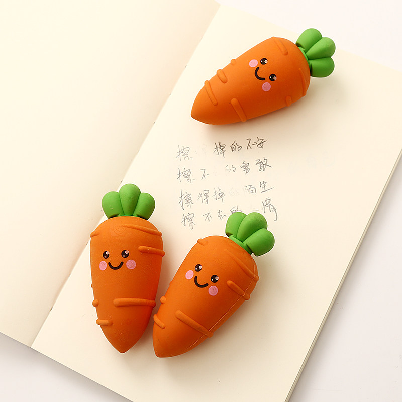 创意可爱胡萝卜造型橡皮擦盒装学生橡皮文具安全正方体得到