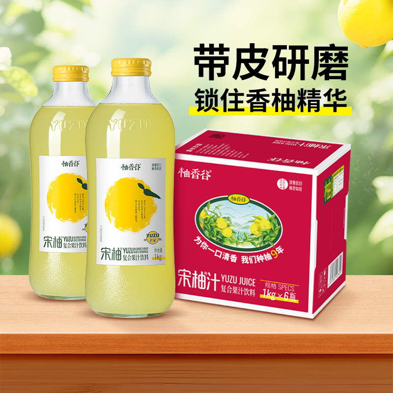 柚香谷宋柚汁双柚汁大瓶整箱玻璃瓶常山柚子果汁饮料1kg