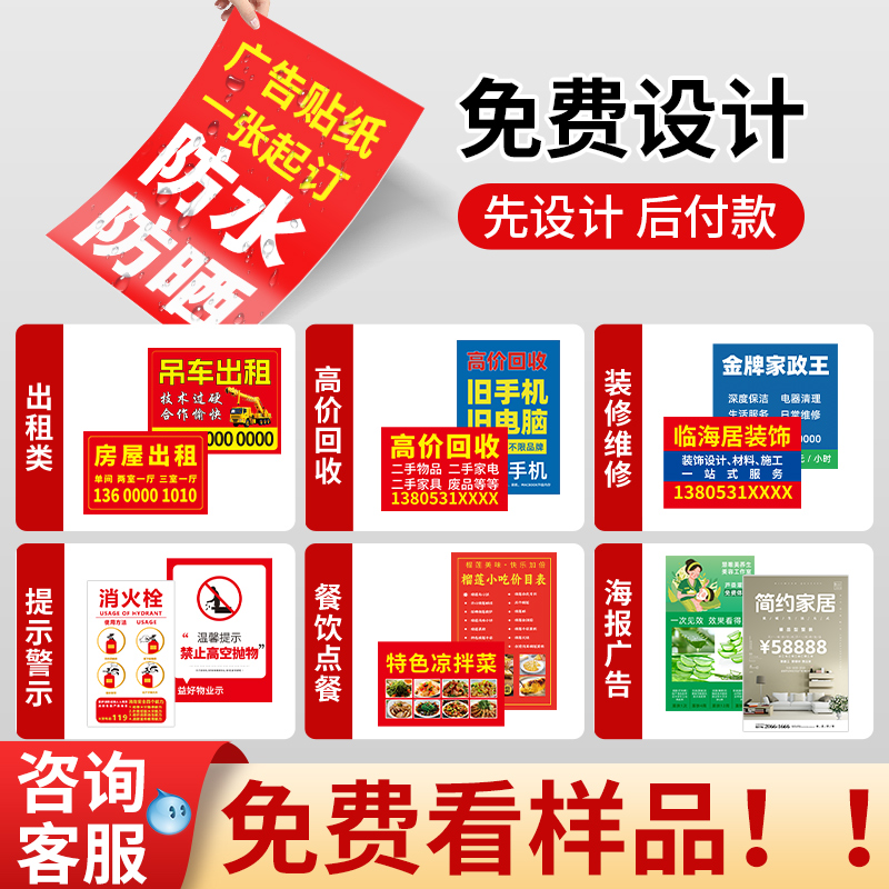广告贴纸海报定制防水户外招牌背胶不干胶自粘贴打印pvc墙贴制作