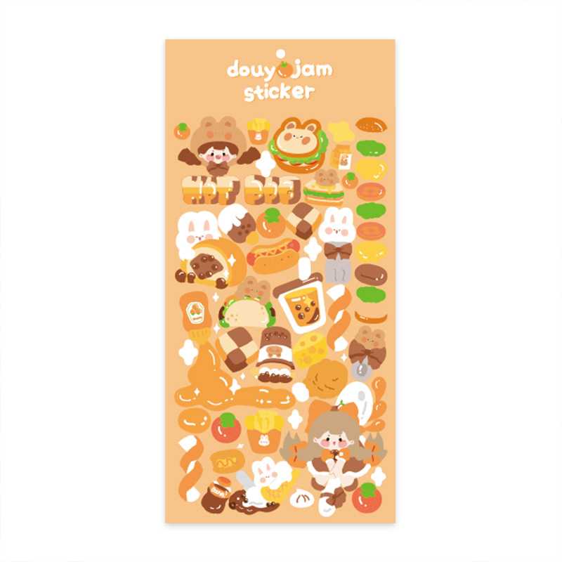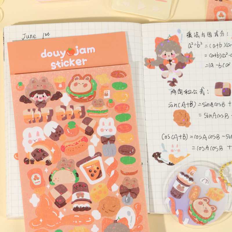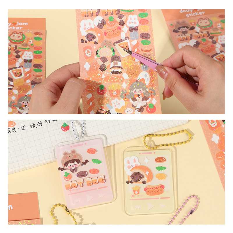 新款直销豆芽酱 美食诱惑镭射咕卡贴纸可爱少女心手帐素材diy咕咔