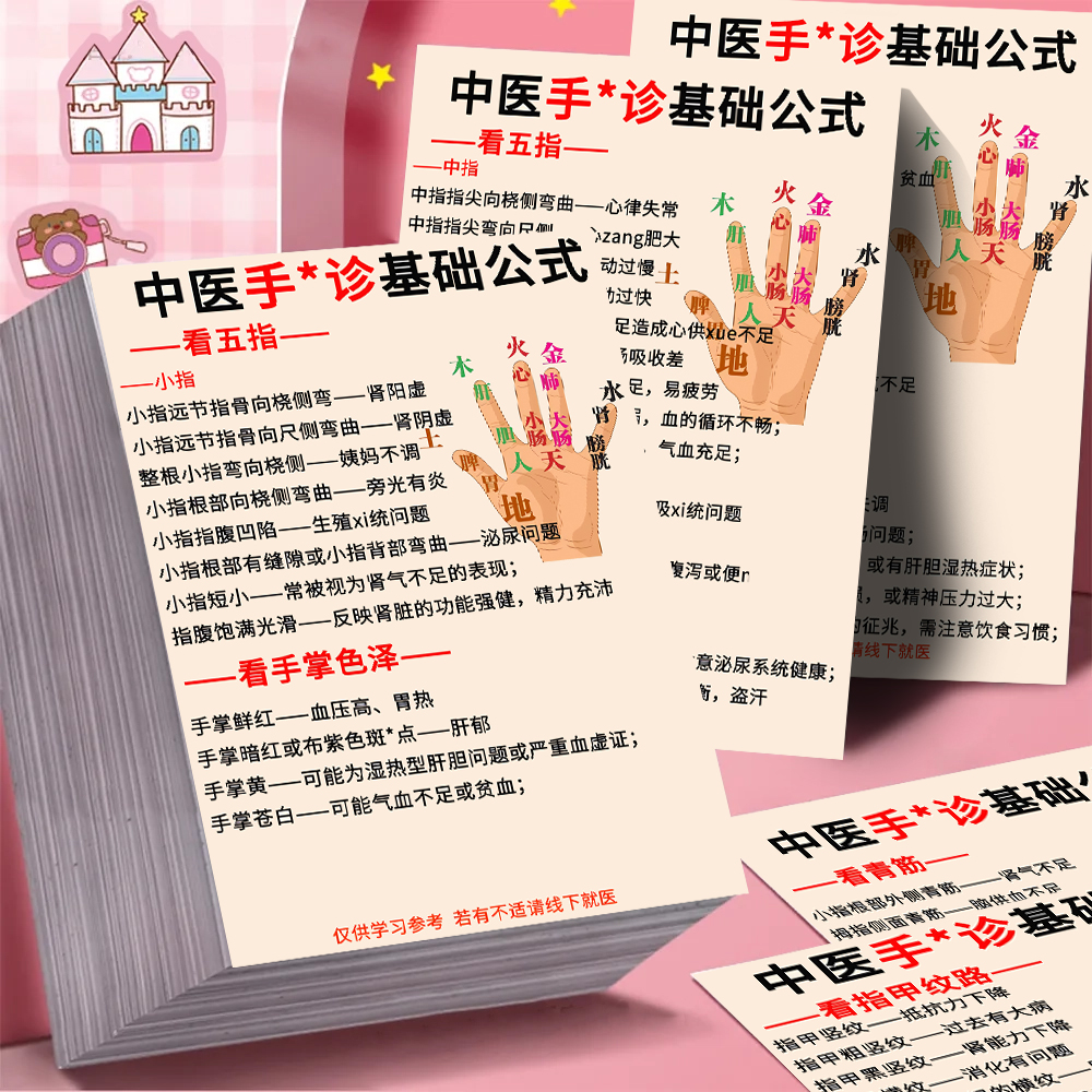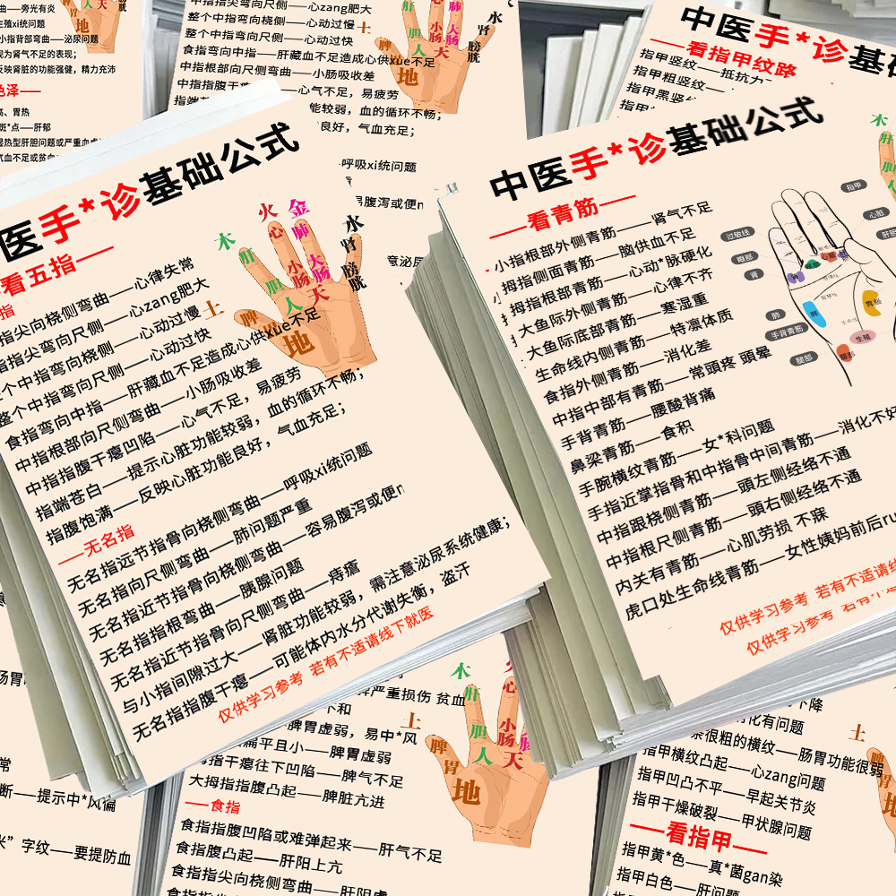 中医手诊基础诊断公式知识点总结金阿康养生症状自查科普高清贴纸