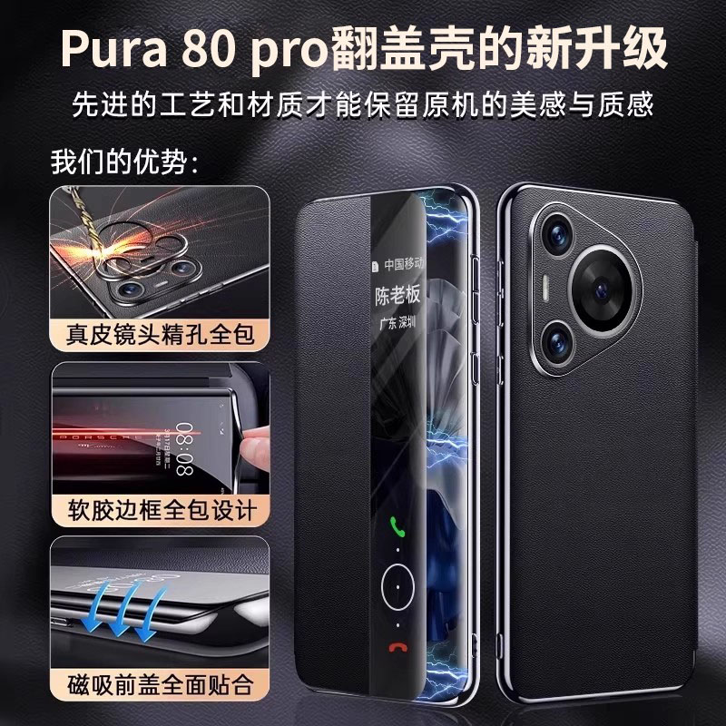 【现货秒发】适用于华为Pura80pro手机壳新款磁吸真皮pura80pro+智能视窗保护套p80ultra镜头全包防摔商务男