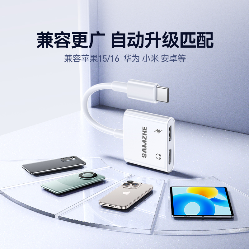 山泽手机耳机充电二合一转接头适用16苹果14转换器直播游戏专用平板ipad双头lightning快充typec一分二转接线