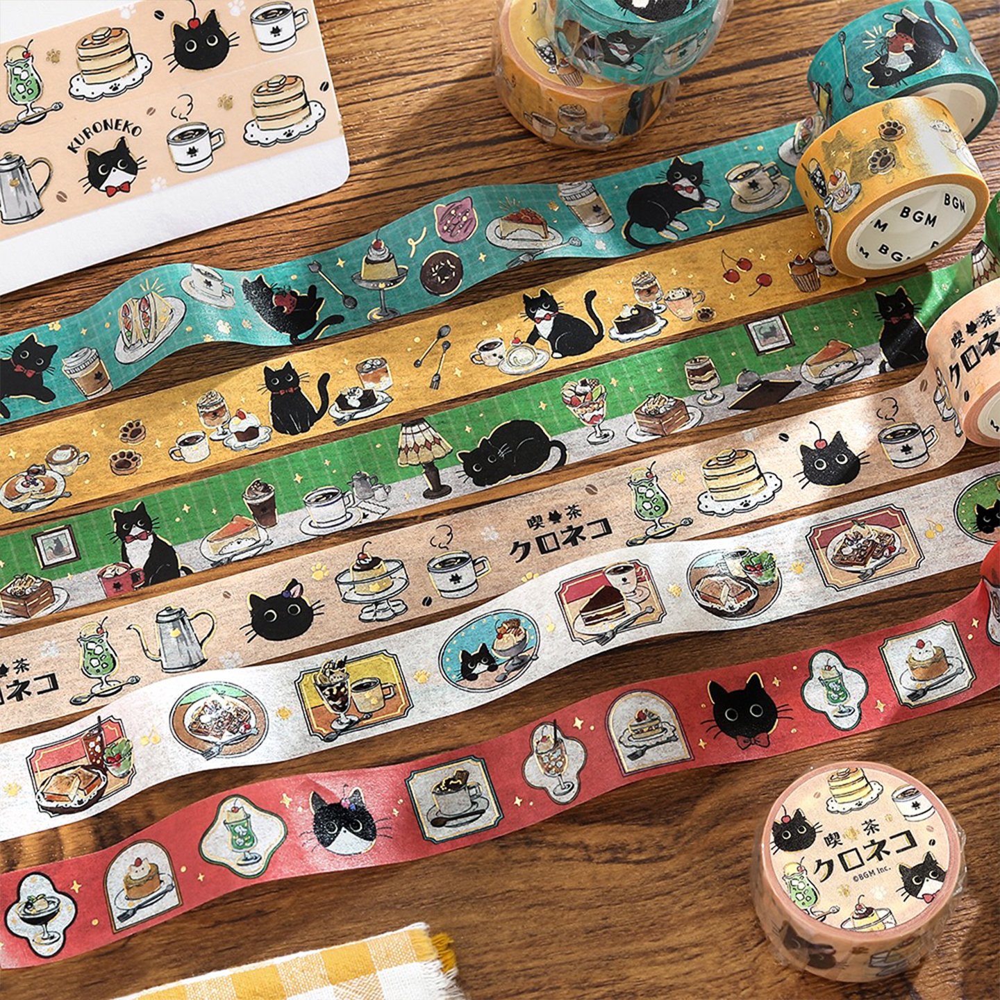 日本 BGM黑猫咖啡喫茶 经典 天空图鉴系列烫金和纸胶带手账拼贴