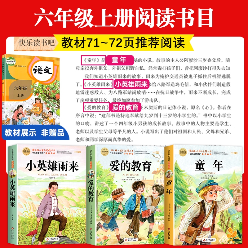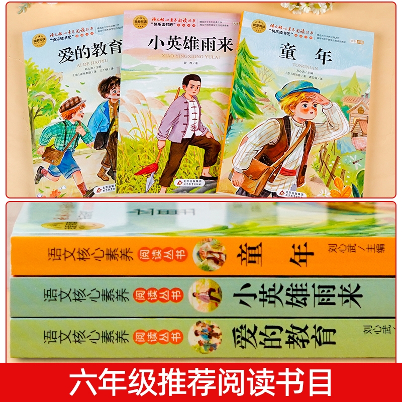 全套3册童年爱的教育和小英雄雨来六年级上册必读的课外书高尔基原著老师推荐经典书目正版完整版快乐读书吧6上小学阅读书籍故事