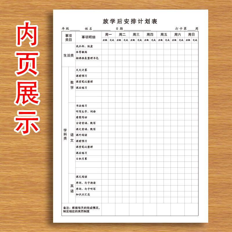 放学后安排计划表小学生中学生放学后体育锻炼计划制定学习计划课后预习课文阅读等安排计划表