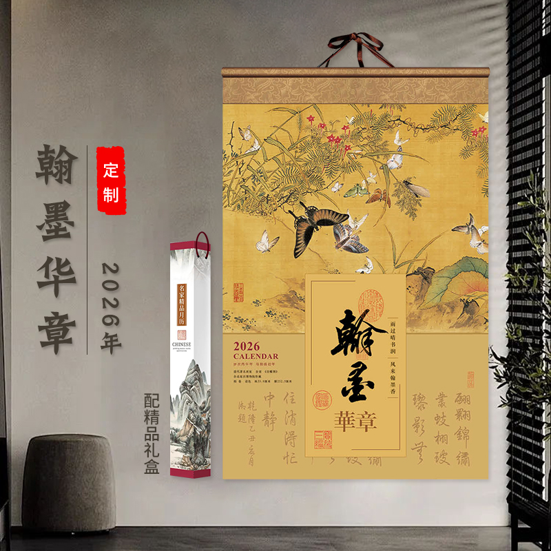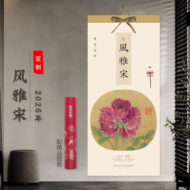 宣纸挂历国风马到成功墙挂式一张双月历商务企业定制logo2026马年