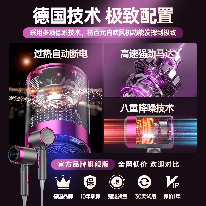 电吹风机家用负离子护发静音速干官方正品宿舍学生用华强北大风力