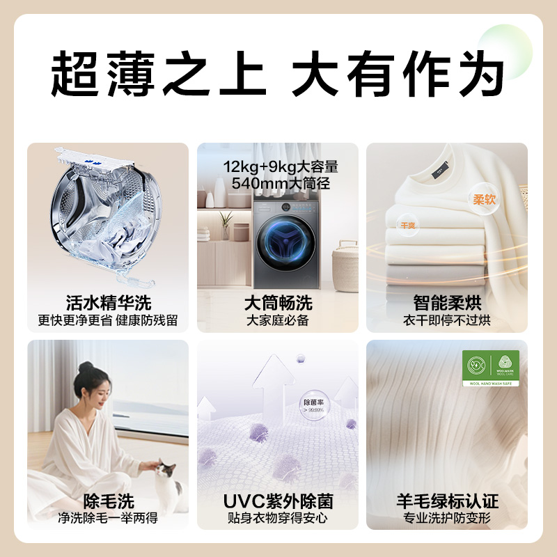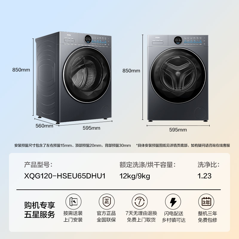 [云溪4.0 极薄]海尔滚筒洗衣机家用全自动12kg大容量洗烘一体65D