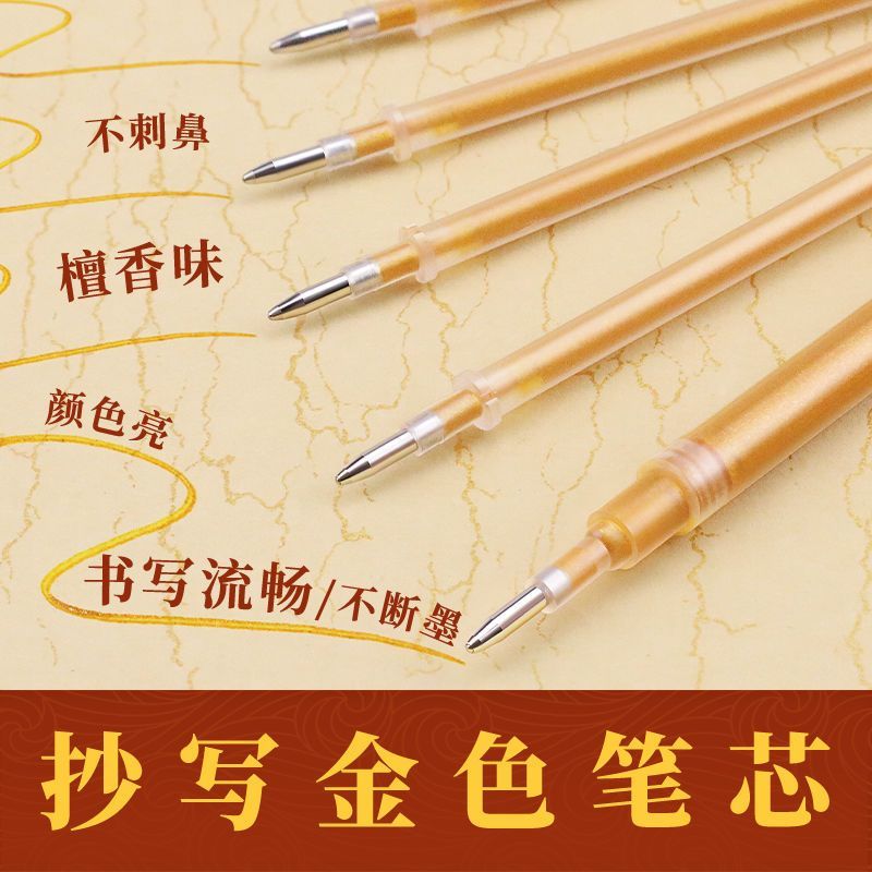金色笔芯抄檀香描经金笔临摹硬笔中性笔抄写本抄经笔专用笔签字笔