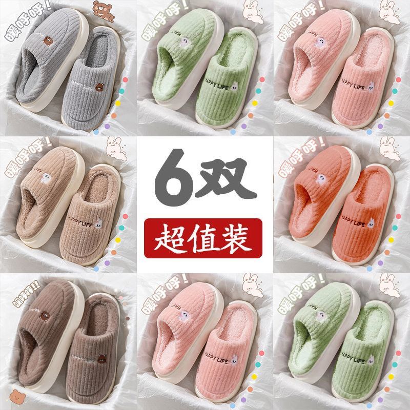 6加绒家居防滑棉拖鞋便宜待客保暖批发厚底冬季男女棉拖毛绒居家