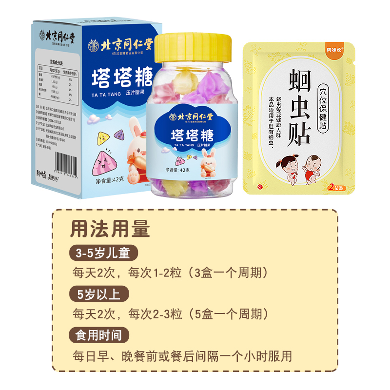 北京同仁堂塔塔糖混合水果味儿童小孩脾胃好非打虫糖送蛔虫贴AA