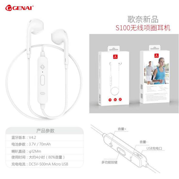 S100双耳蓝牙运动项圈无线蓝牙耳高清无损音质跑步健身运