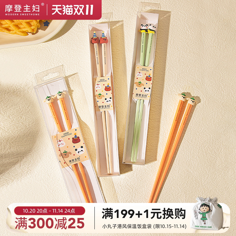 摩登主妇动物派对儿童筷子家用分人筷高档抗菌防霉可爱餐具单人装