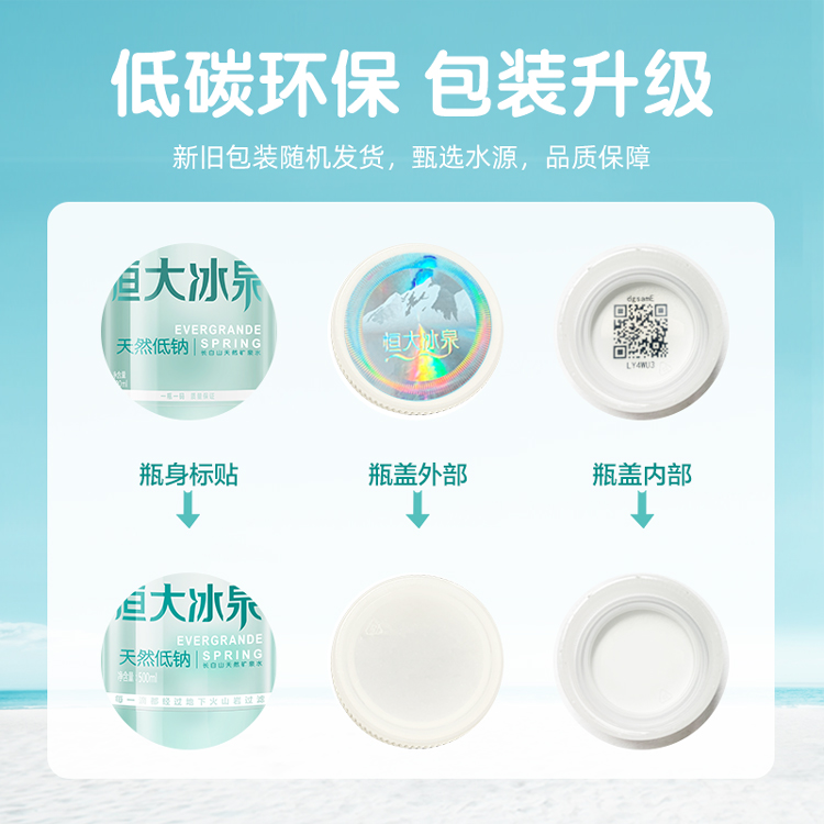 恒大冰泉矿泉水500ml*24瓶整箱包邮长白山低钠矿泉水小瓶装饮用水