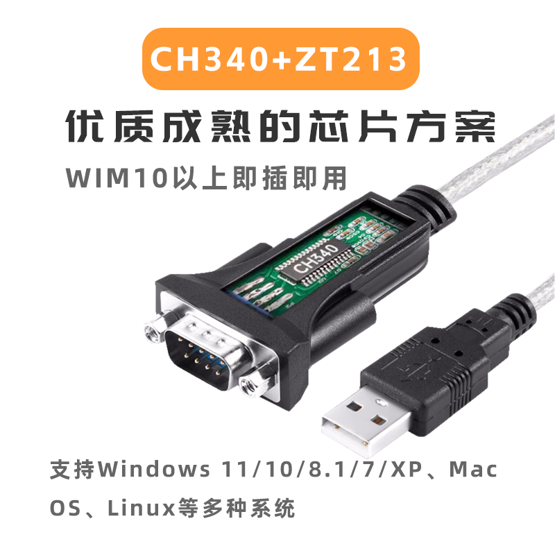 【GKREN】原装CH340串口线USB转RS232为笔记本扩展DB9串口调试COM