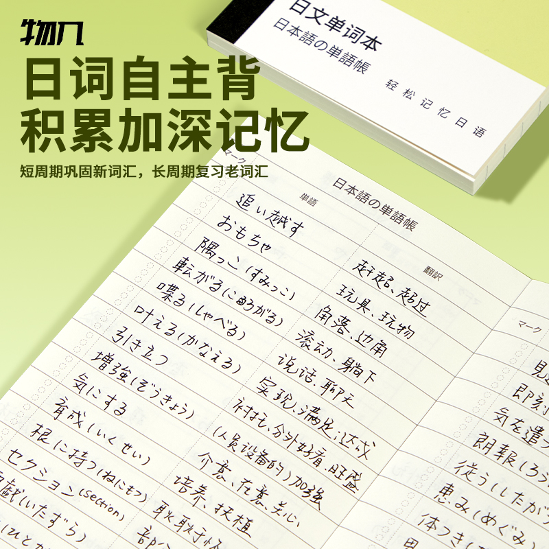 物几 日语单词本艾宾浩斯记忆法 曲线复习 便携单词本随身携带轻松学日语背诵神器