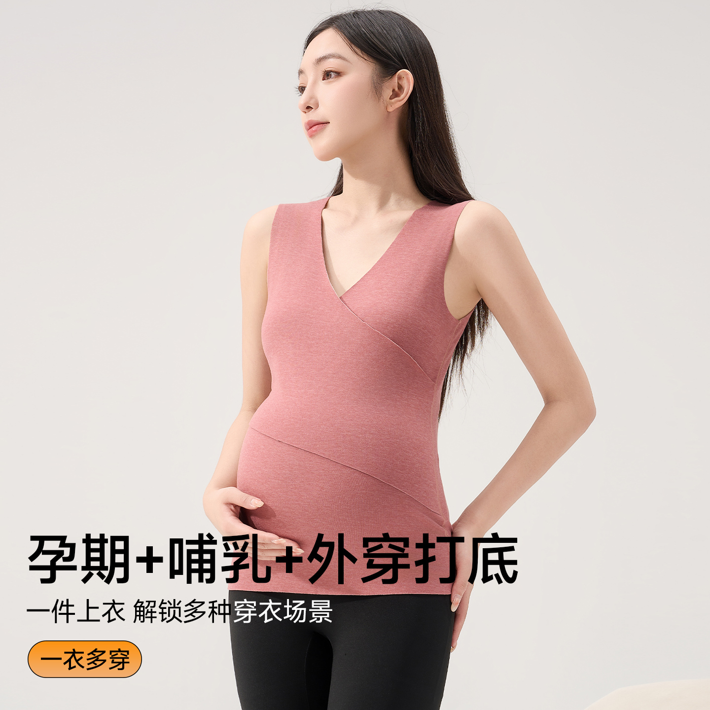 雅鹿保暖背心孕妇专用内搭秋季薄款加绒怀孕期打底衫产后哺乳上衣