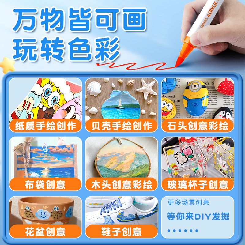 晨光丙烯马克笔学生美术专用不透色可叠色彩笔儿童幼儿无毒水彩笔