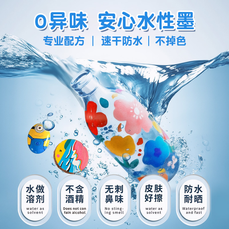 恩米小黑盒直液式丙烯马克笔软头颜色笔小学生幼儿园画画美术专用
