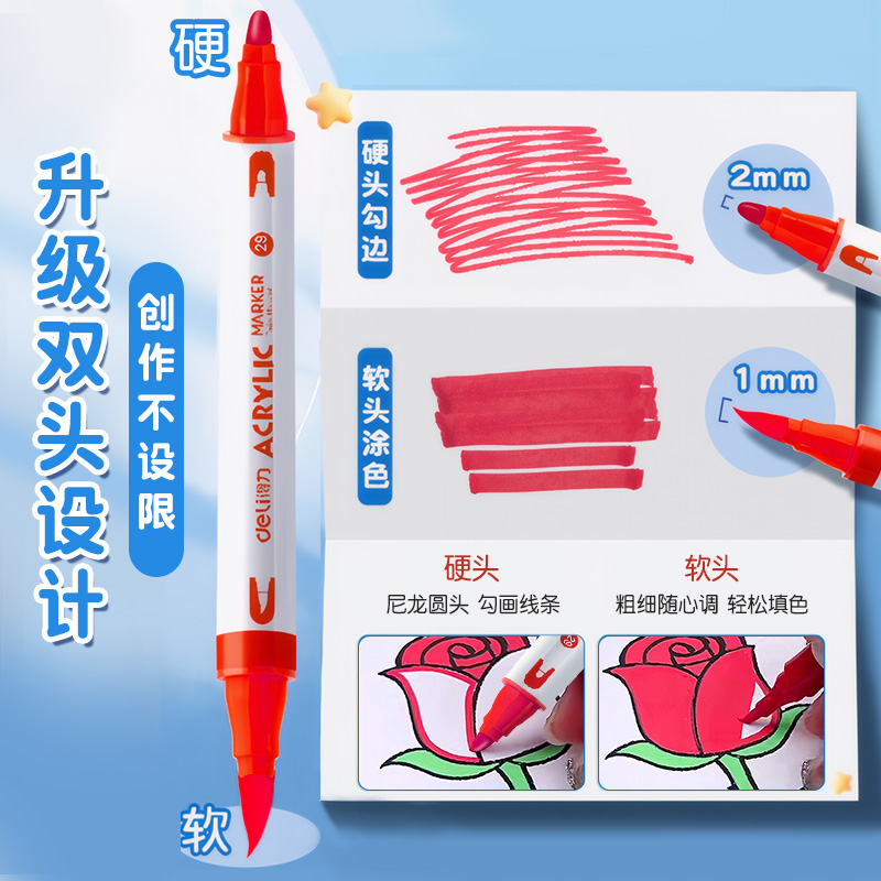 小学生专用无毒不透色可叠色36色直液式丙烯马克笔得力软头硬头水彩笔24色48色幼儿园儿童画画美术防水不掉色