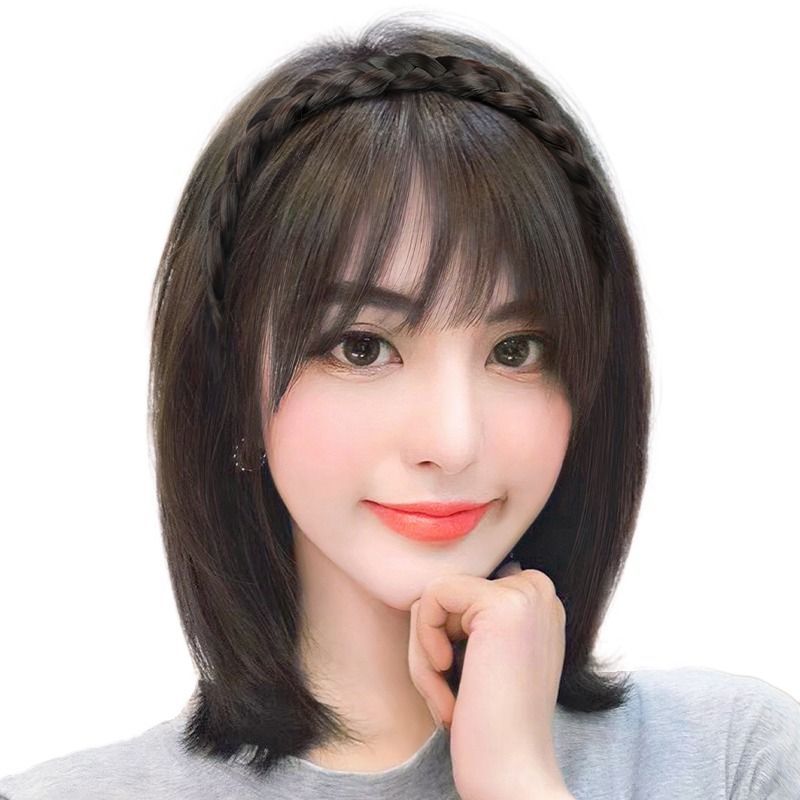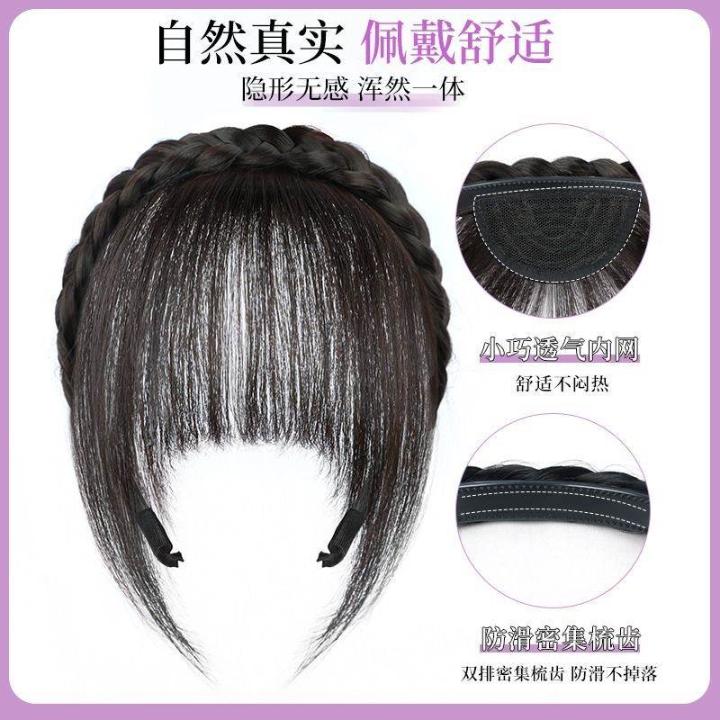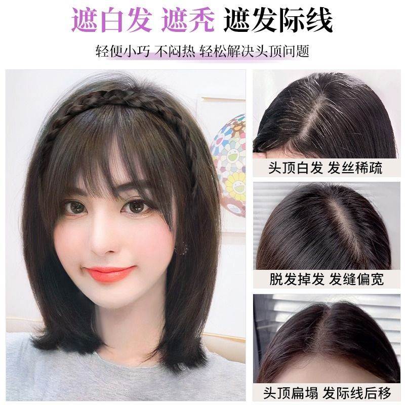 真发发箍刘海一体法式假发片自然薄款遮白发头顶补发增发量假发女