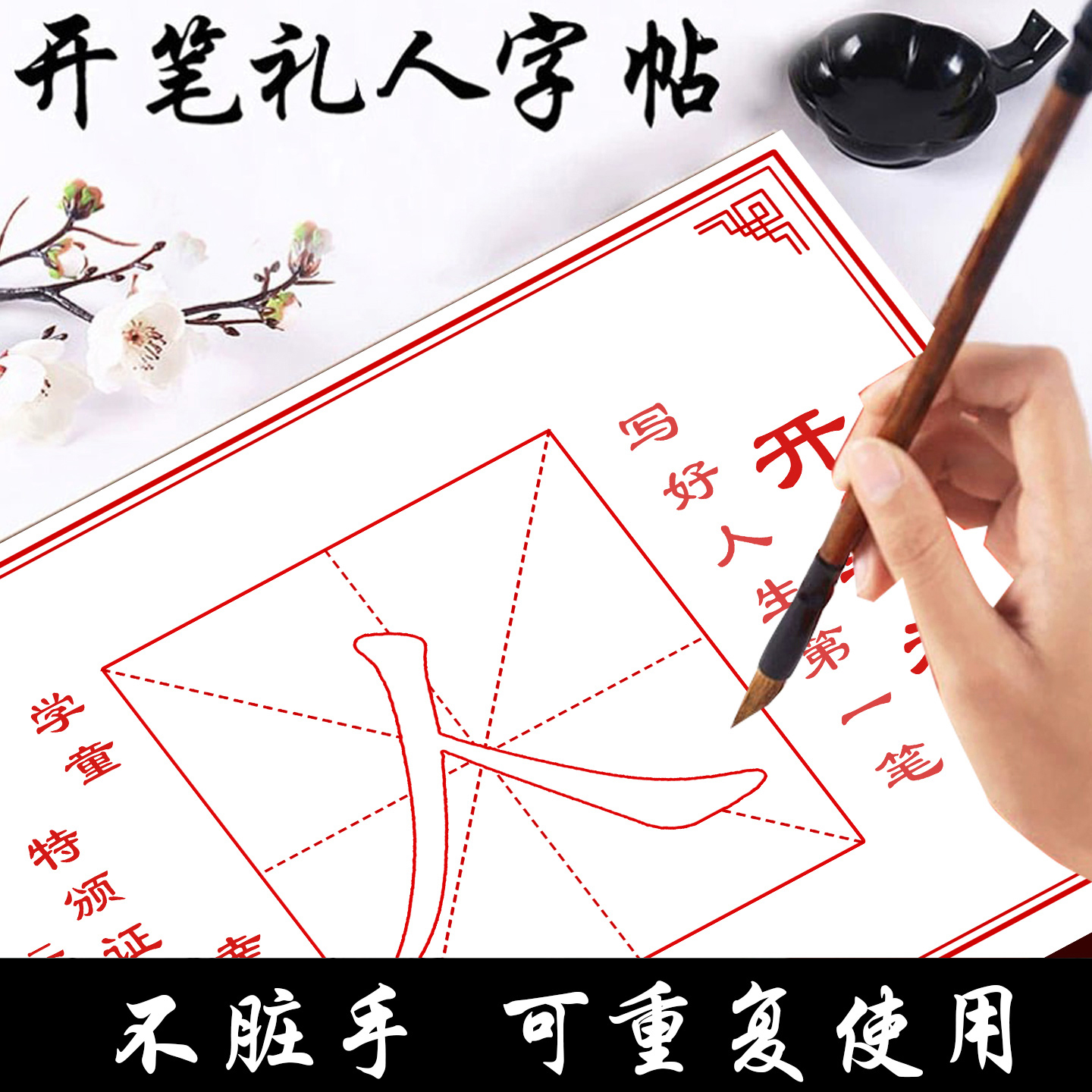 开笔礼人字帖套装幼儿园一年级小学生国学启蒙儿童人字字贴描红写人字毛笔宣纸卷轴启智材料开学毕业仪式