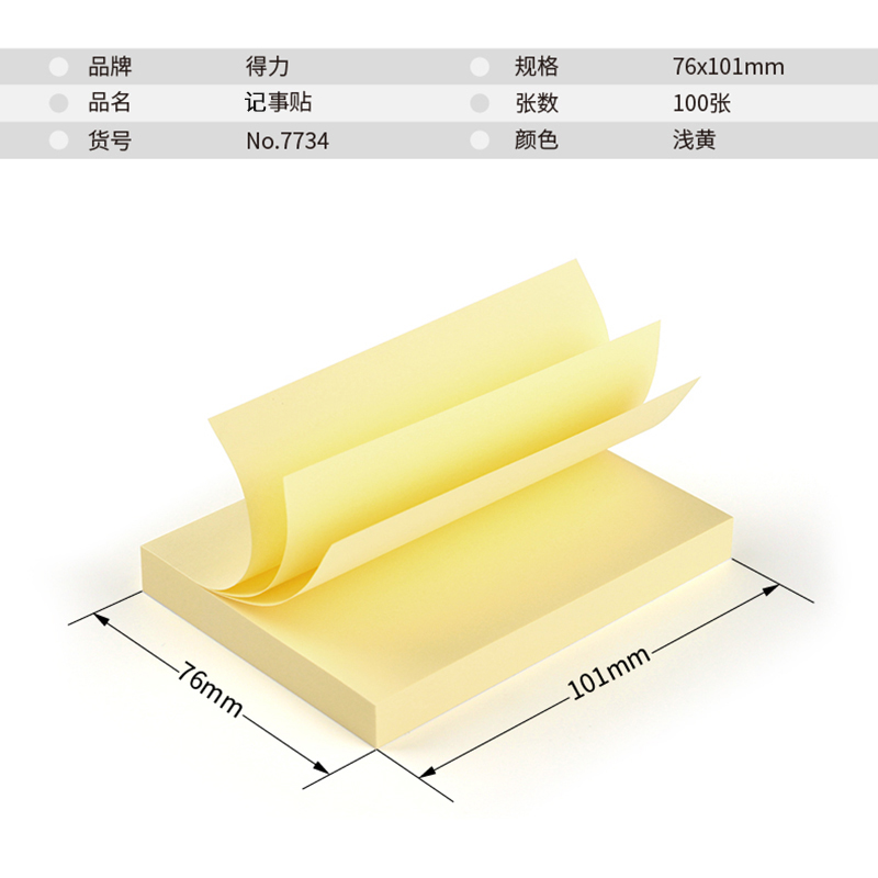 得力7734便利贴便条纸大书签便签本办公文具用品小本子记事备忘贴及时贴可撕小本子便条本
