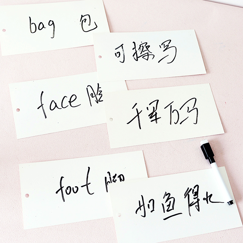 英语单词卡片空白可擦写白色硬卡纸写字卡手写卡记忆卡幼儿园教具