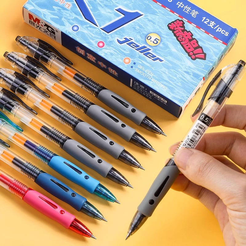 包邮晨光k35按动中性笔水笔学生用考试碳素黑色水性签字笔芯0.5mm
