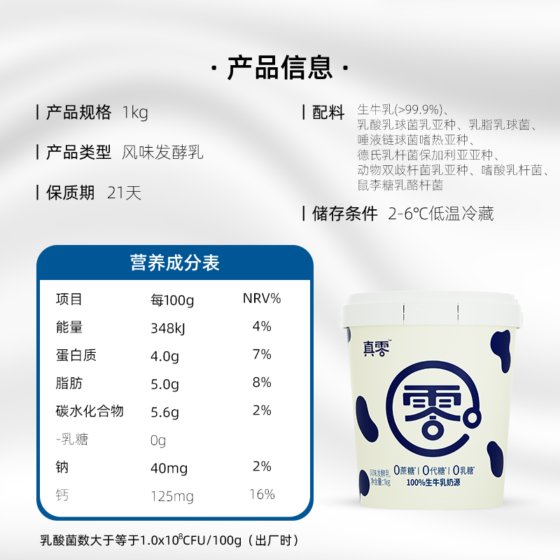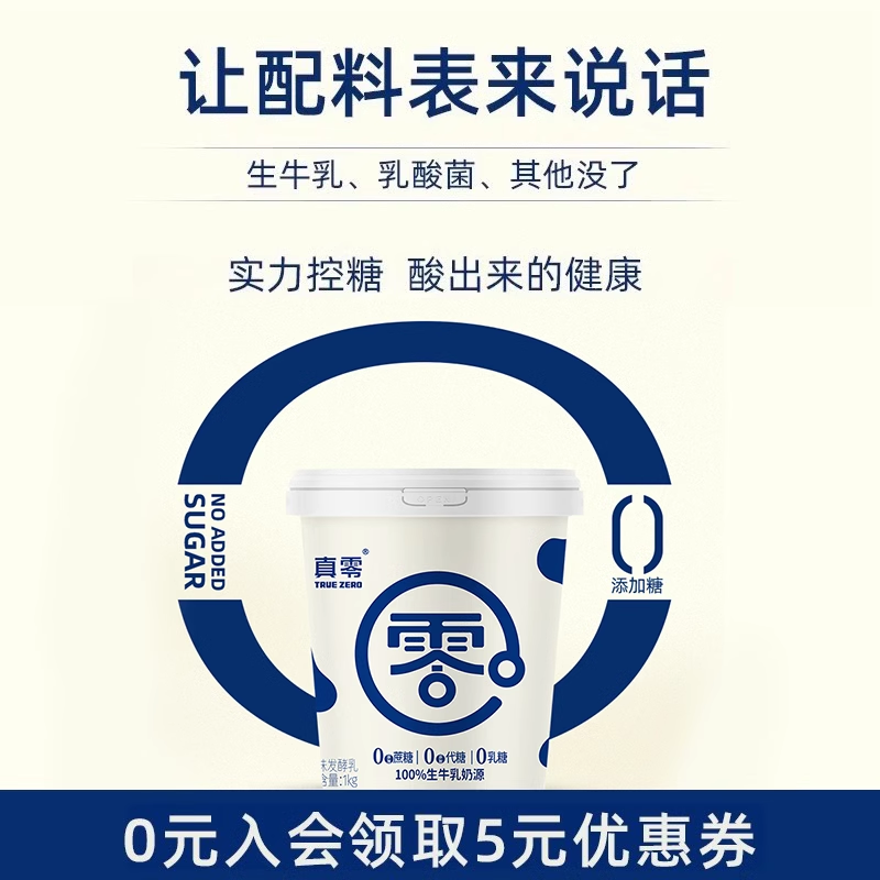 真零酸奶0乳糖0代糖纯酸奶低温酸奶1KG*2桶装原味酸奶代餐奶