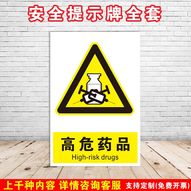 高危药品黄色三角危险警告标识牌标牌警示牌指示牌安全提示请勿轻易服用标示牌警示标志警示贴标识贴标志牌