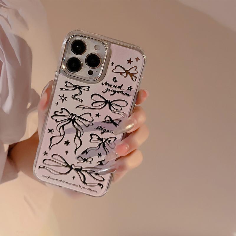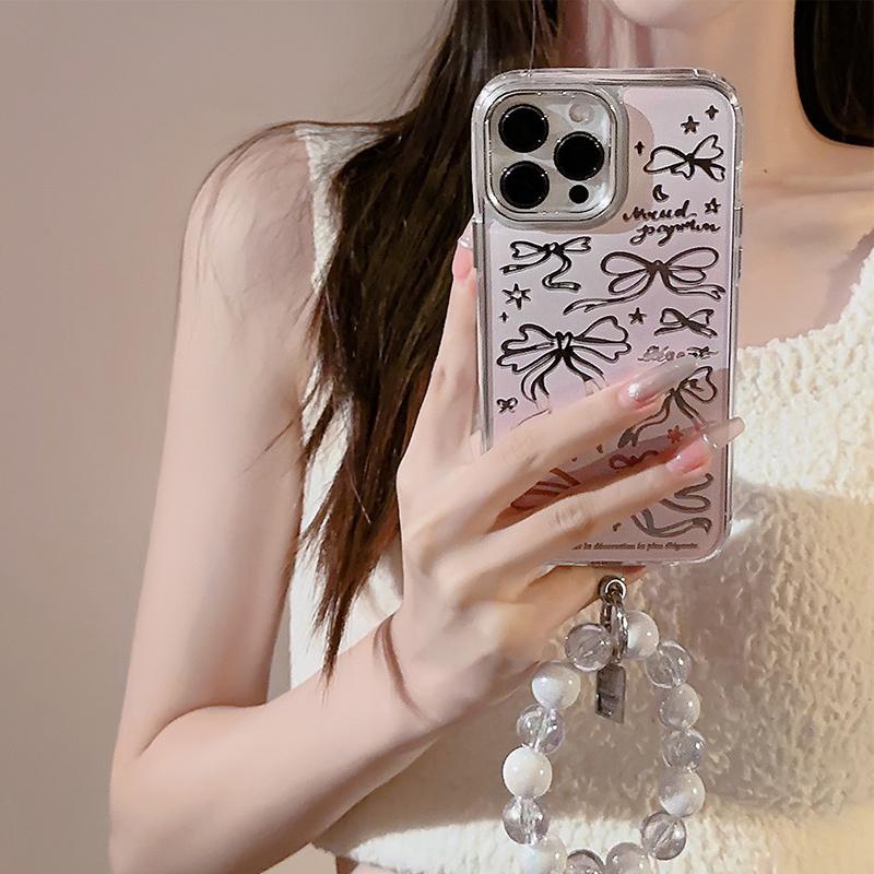 蝴蝶结芭蕾风镜面挂绳iPhone手机硬壳适11/12/13/14/15/16pro max