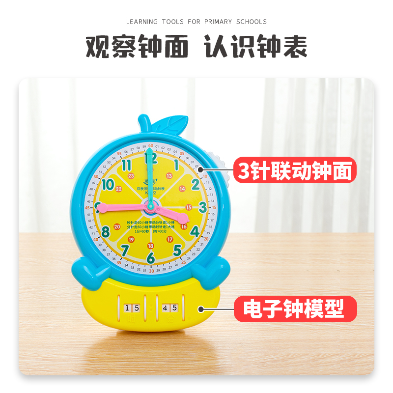 银河星双表示法联动钟表3针小学生教具模型双表示法电子钟模型钟表学习器24时三针联动秒针可拆一二年级