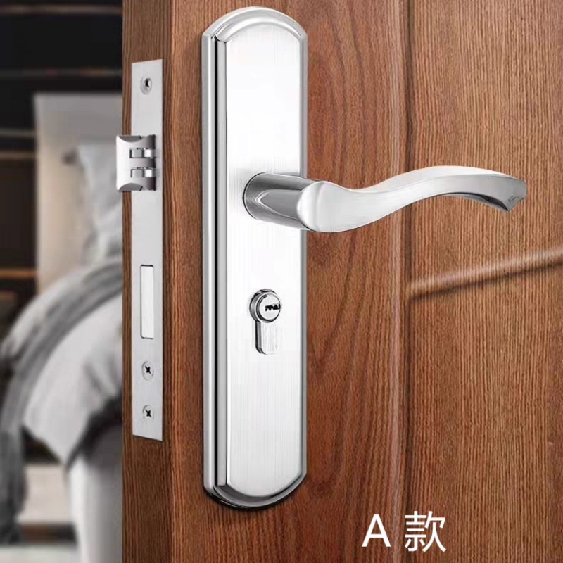 卧室室内门锁家用房可调节免改孔不锈钢静音房间通用型老式木门锁